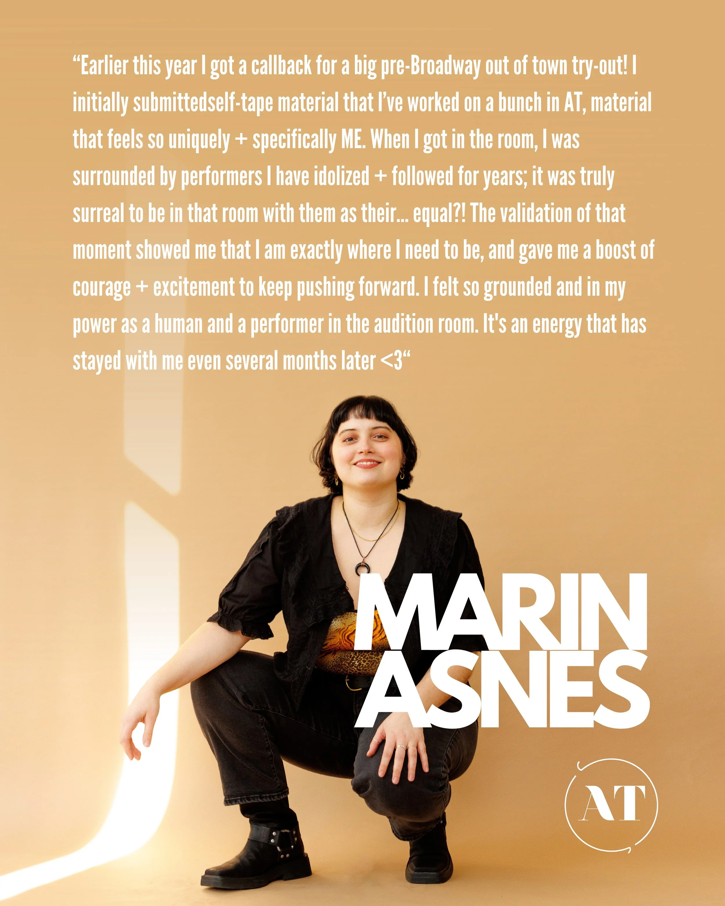 This class is ideal for early-career actors who are anxious to dig into work, who are looking to perform full songs in a more serious (but safe!) setting, who are looking to collaborate with other artists and to get new footage for their websites and social media.